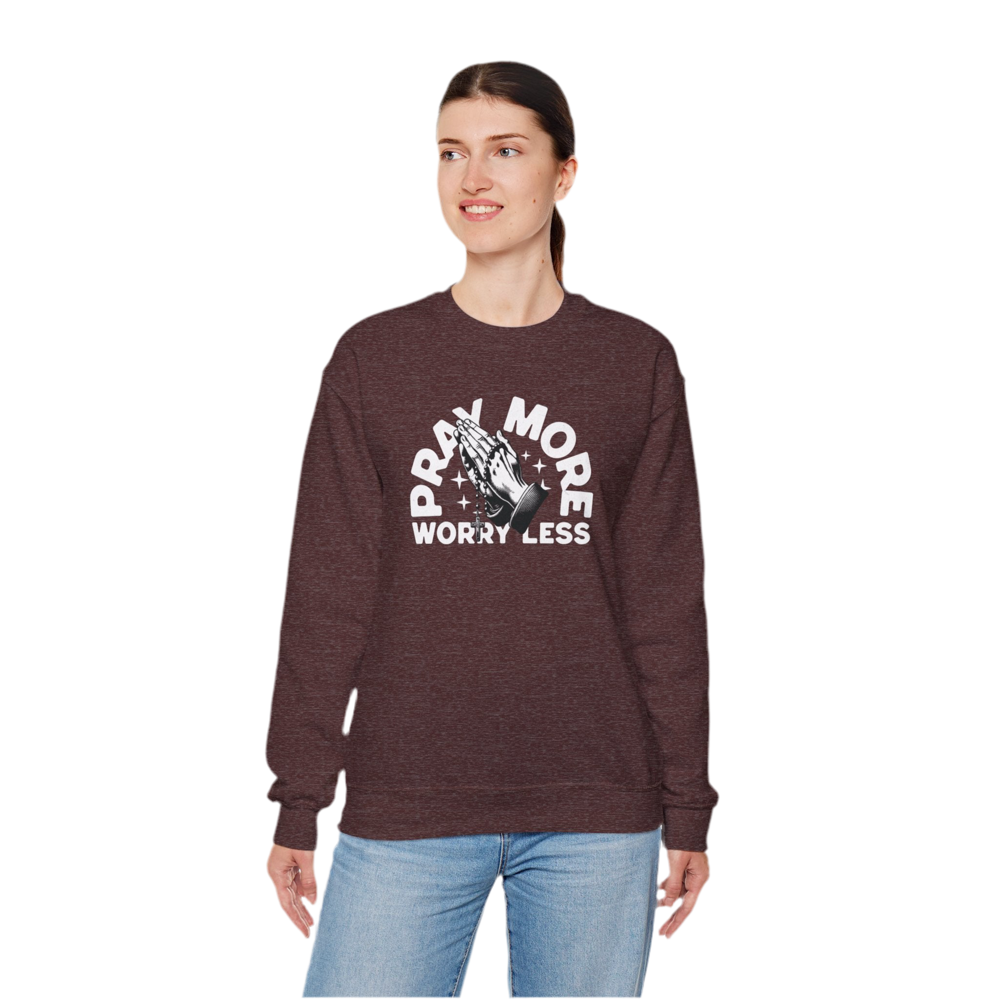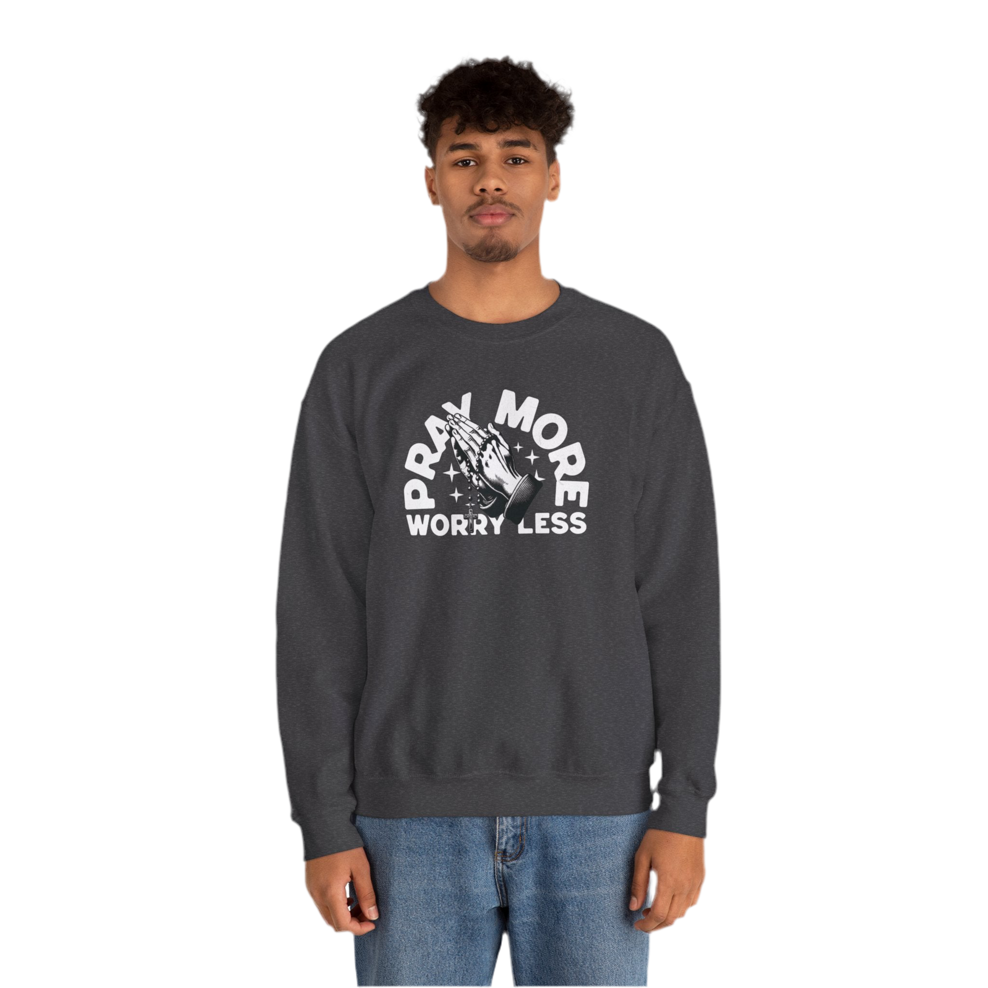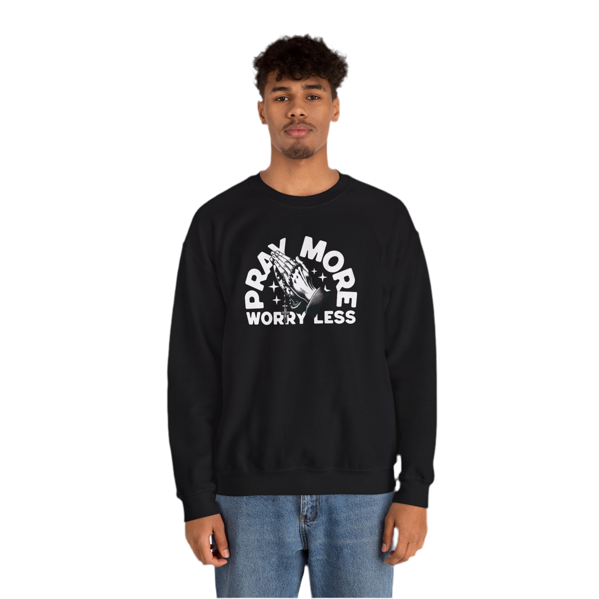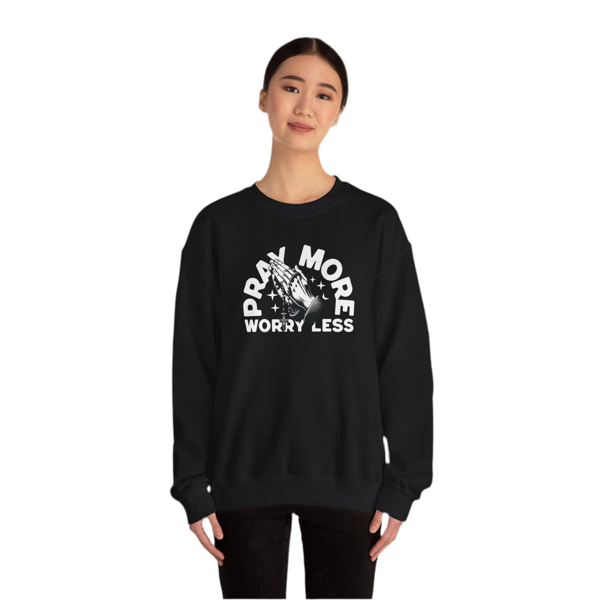 “Pray More Worry Less” Crewneck Sweatshirt - "Pray More Worry Less"