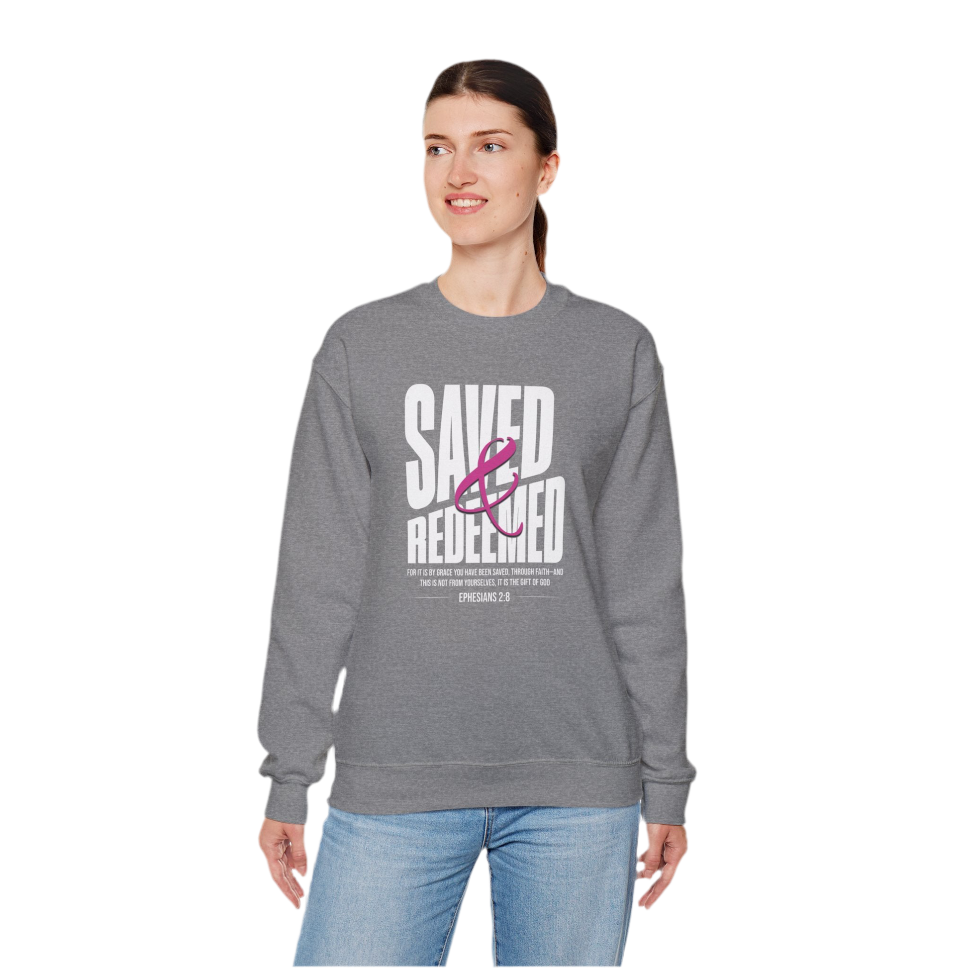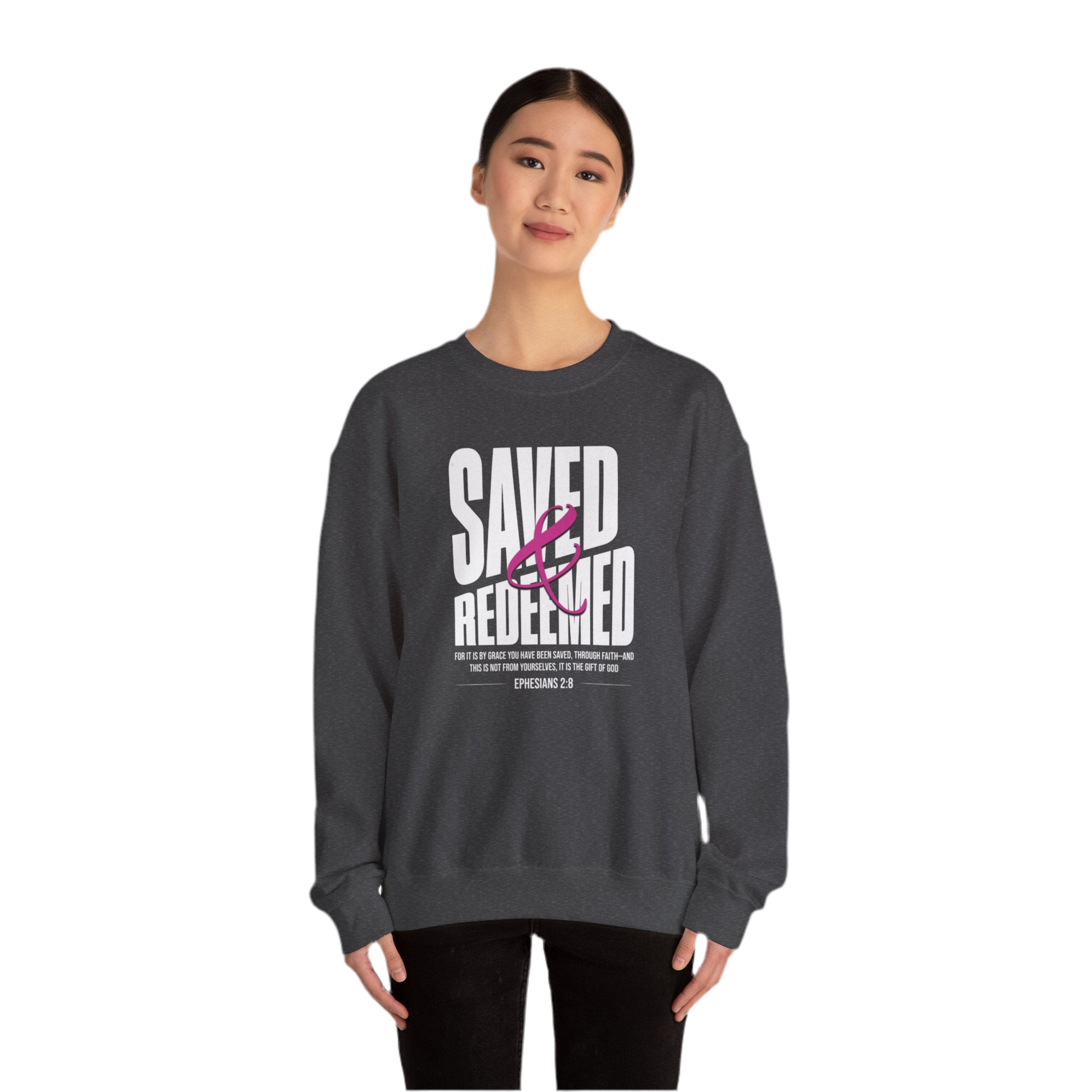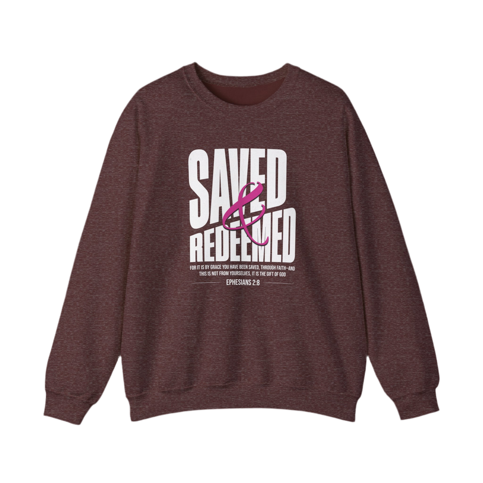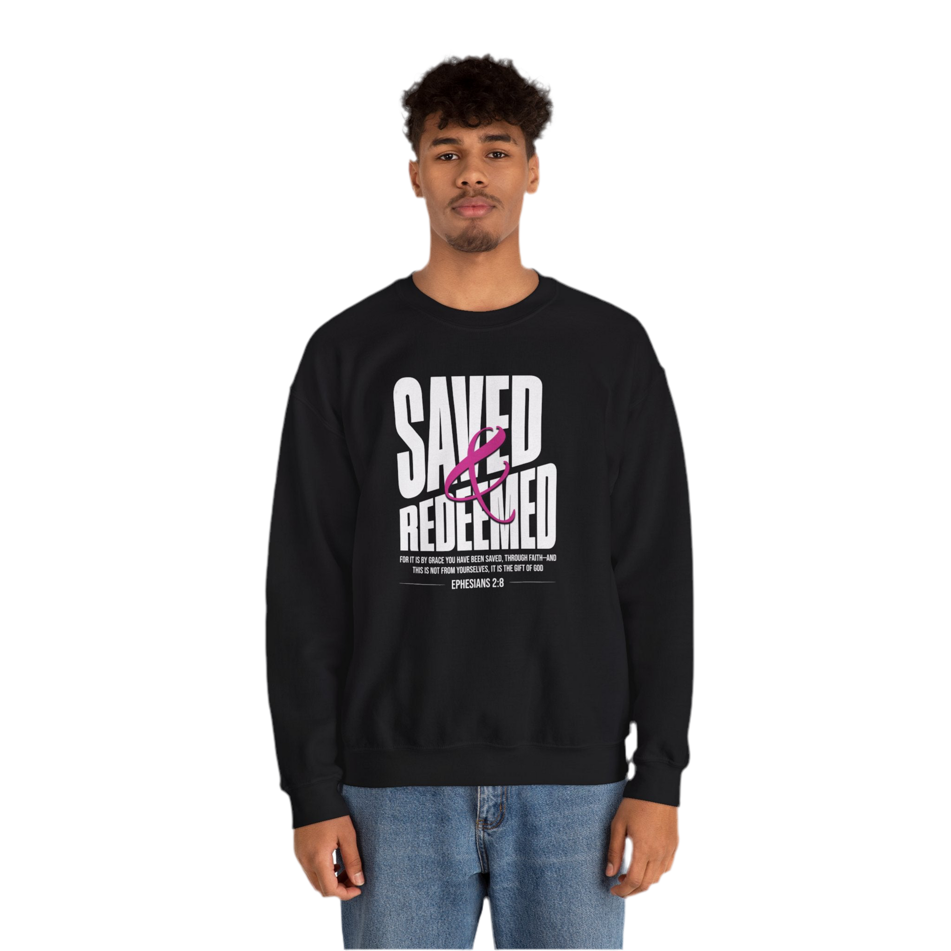“Saved And Redeemed” Crewneck Sweatshirt - "Saved & Redeemed" Ephesians 2:8